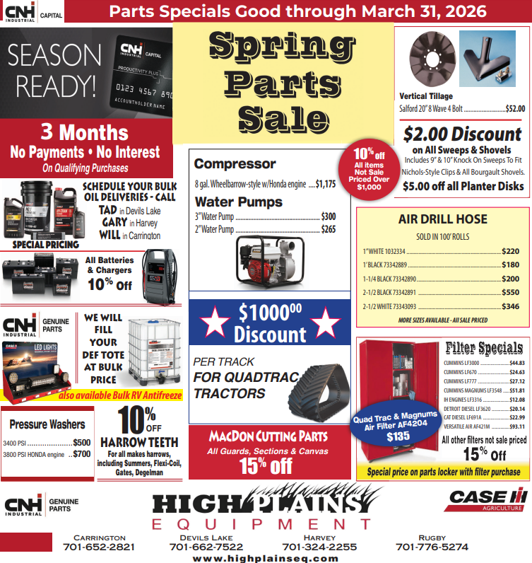 High Plains Equipment is conveniently located near the areas of Grand Forks, Casselton, Bismarck, Jamestown, Minot and Langdon.